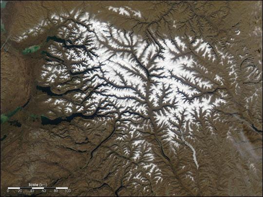 leaving semi-circular mountain ridges composed of basalt that march out from the
