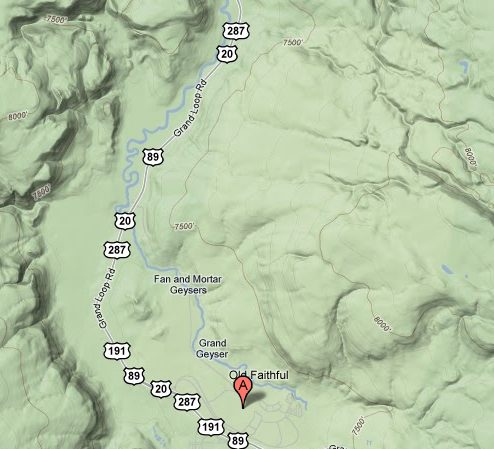 This is the Yellowstone supervolcano seen in Terrain view. We are too high to have the topographic elevations display.