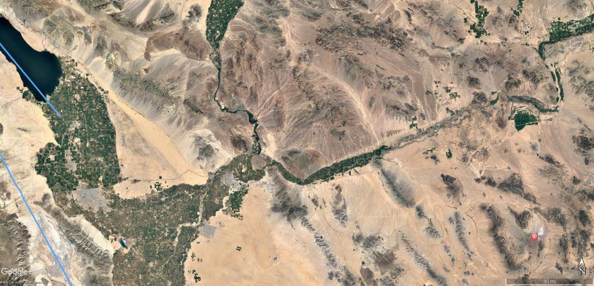 While the Colorado turns north, an inductive reactance that follows the magnetic field, the Gila is capacitive reactance that briefly turns south and then immediately returns to the source vector.